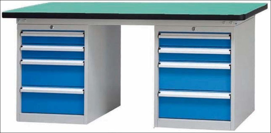 复合台面特性 台面平整度高,挠曲度为0.8mm。 表面2mm厚度为高分子材料,使台面耐酸碱、耐磨、耐油。 台面采用高压纤维板,使台面更具有抗冲击性。 特别的圆弧桌角,不易受撞击损坏。 高强度塑胶包边坚固、实用、不易损坏、不易脱落。 榉木桌面特性 桌板使用榉木与防水胶经加压制造而成。 表面光滑平整,美观不易变型,耐油、耐热、耐酸、耐碱, 适合一般工厂作业与精密模具维修,仪器置放与检测等用途。 不锈钢包面特性 桌板使用高压合成板,表面包1-2mm砂面不锈钢板,以达美观耐用。 耐高温、耐磨损、耐油、使用寿命长,为多功能桌板, 适合一般工厂、食品业、研究室、电子厂无尘室使用。 轻型工作台可承重300kg-500KG 防火板台面特性 轻巧、美观、耐磨、防火。 层压板台面特性 工作桌面平整,变型小,强度高,抗冲击性好。